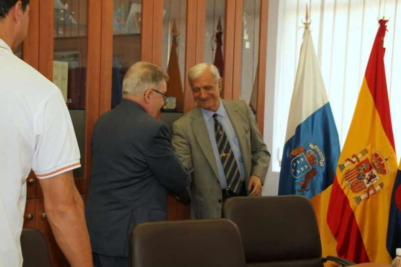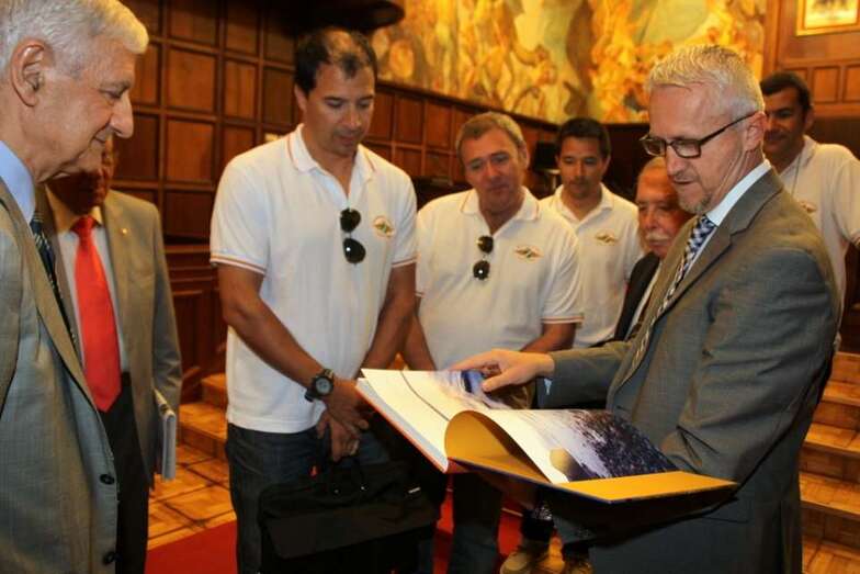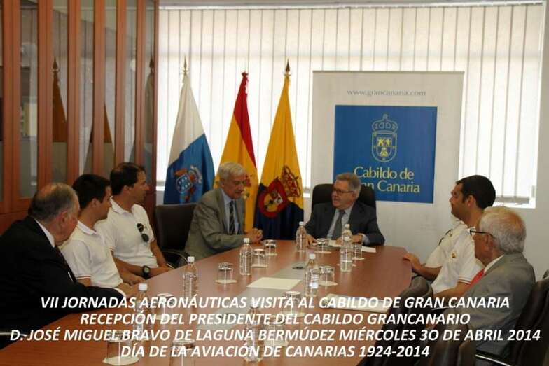 Durante la mañana del miércoles 30 de abril, Día de la Aviación de Canarias 1924-2014, fueron recibidos por el Presidente del Cabildo Gran Canario, D. José Miguel Bravo de Laguna, visitando la Casa-Palacio del Cabildo Grancanario, en donde se les obsequió como recuerdo de la visita un libro de paisajes de Gran Canaria. Posteriormente se trasladaron al Museo Elder de la Ciencia y la Tecnología, donde se proyectó la película La Leyenda del Vuelo, girando una visita al Museo donde actualmente se expone una réplica del aeroplano Bleriot XI, realizada a escala ¼ por D. por D. Jaime Roura Font. Maqueta construida según el modelo de aeroplano que el piloto Léonce Garnier el 30 de abril de 1913 hizo volar sobre Guanarteme, cedida a la institución museística dependiente del Gobierno de Canarias durante los actos del Centenario programados el pasado año.