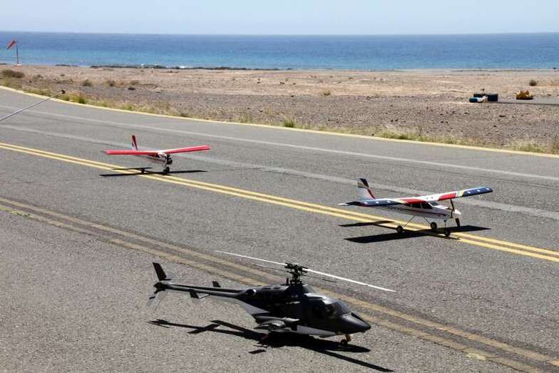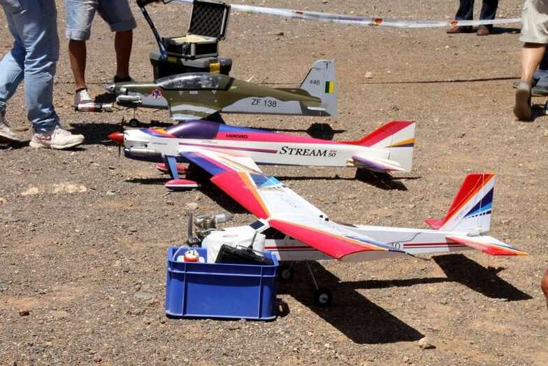 El profesor de aeromodelismo D. Rosendo Fragoso Lugo, isleño de La Gomera, veterano que ha dedicado más de veinte años a la modalidad, ha participado en numerosas competiciones. Comenta los modelos presentados fabricados en China, un modelo Trainer para el entrenamiento de principiantes. Modelos de ala alta y baja que requieren mayores conocimientos y experiencias para sacar el mejor rendimiento en vuelo. Procedentes de diferentes fabricantes que ultiman su formato de colores, señales, etc. Los helicópteros requieren un mejor entrenamiento ya que es más complejo su vuelo. Modelos que trabajan con batería eléctrica con autonomías de 30 minutos de duración en vuelo. Otros consumen gasolina Glow, mezcla de aceite para que no se funda el pistón en el motor de dos tiempos que genera la fuerza motriz.