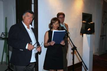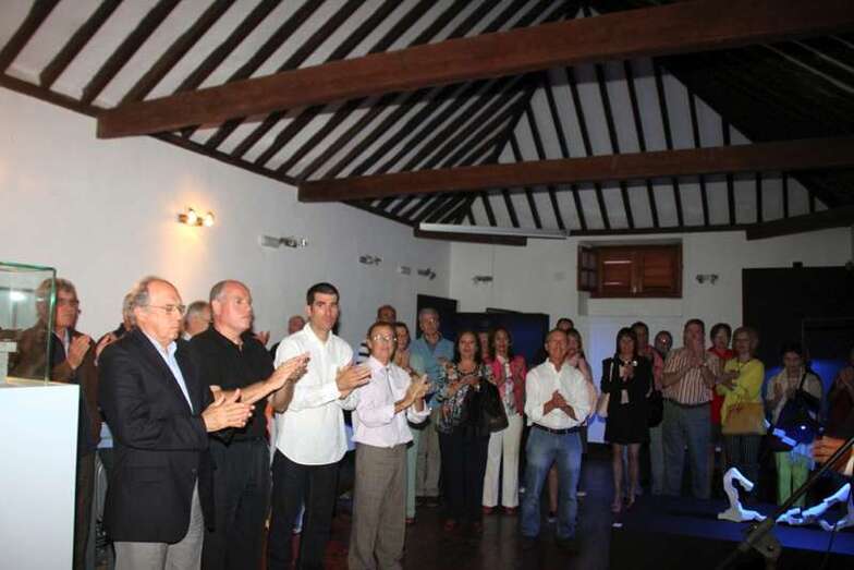 Lucana Falcón expone: “Señoras y señores, buenas noches y bienvenidos. En nombre del Círculo Cultural les damos las gracias por acudir esta noche a la inauguración de la exposición de esculturas, Danzas de la Lava, del artista Don Máximo Riol Cimas. Una muestra con la quiere rendir homenaje al polifacético e ilustre artista canario César Manrique.