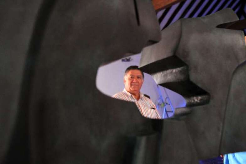 Telde.- El Círculo Cultural de Telde fue escenario en la noche de ayer martes de la inauguración de Danzas de lava. Una muestra de seis esculturas con las que el autor Máximo Riol rinde homenaje al desaparecido César Manrique. Medio centenar de personas arroparon a este consolidado escultor radicado desde hace muchos años en el municipio.