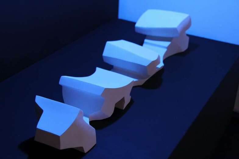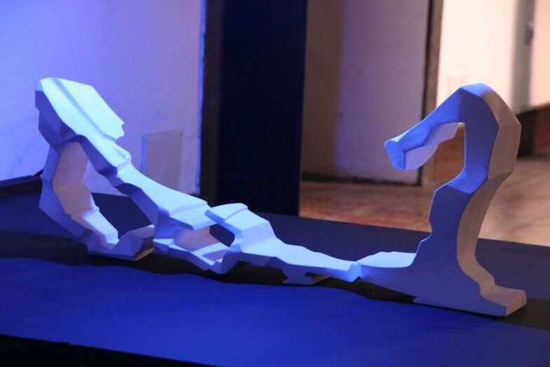 En estas piezas que hoy vemos por primera vez y que el artista titula “La danza”, todas las geometrías y las dinámicas rítmicas de distintas etapas y obras, se funden en movimientos continuos, creando una imagen casi inabarcable de lo proteico, de la forma en plena autogeneración. La danza nos sumerge en la plasticidad terrible del magma, cuyo enfriamiento reflejará el infinito espectro del volumen y la textura. Riol, sintetiza línea y vacío en una corriente horizontal que conduce su escultura hacia una nueva expresividad neo-barroca. Aunque solo la veamos a pequeña escala, esta obra propone una escala escultórica ambiental y monumental, prácticamente irrealizable, la posesión de la geografía por la metáfora de su propia creación. Buenas noches y muchas gracias”.