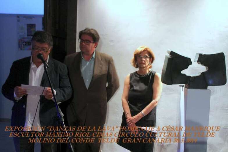 Con la intervención de Da. Lucana Falcón León, presidenta del Círculo Cultural de Telde, la noche del martes 20 de mayo, se inició el acto de inauguración de la Exposición “Danzas de la Lava”, Homenaje a César Manrique, que el escultor teldense Máximo Riol Cimas reúne en seis obras de su producción artística en la entidad cultural.