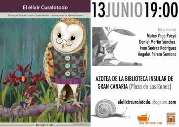 Telde.- Este viernes, a las 19.00 horas, los escritores canarios, Sandra Franco Álvarez (autora de El lagarto de Ansite) y Daniel Martín Castellano, concejal de Cultura de Telde y autor de títulos como El Monstruo, Grejo y el Mar, La Gota, etcétera, presentarán en la Biblioteca Insular del Cabildo de Gran Canaria su nuevo libro: El elixir curalotodo, de la editorial Babidi-bú libros.