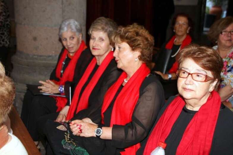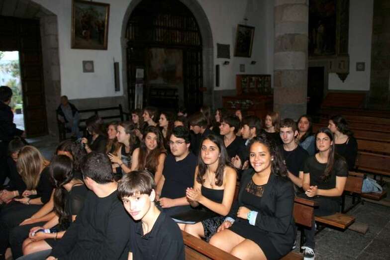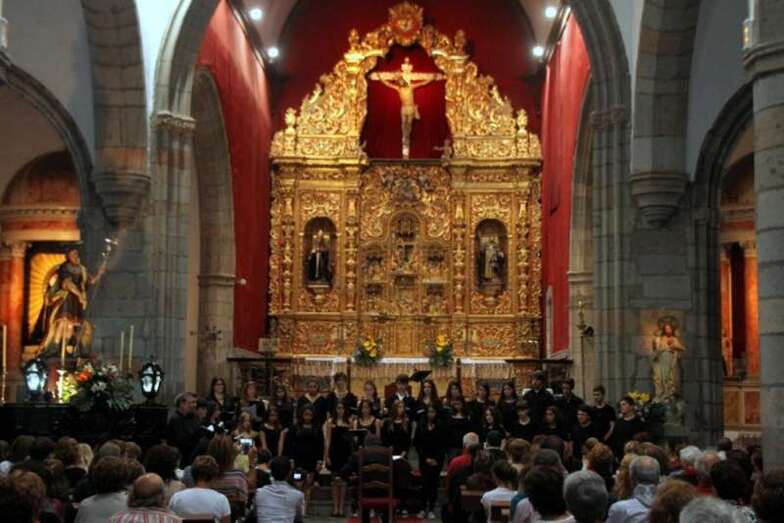 Finaliza el concierto con una foto de familia de todos los componentes de las agrupaciones corales participantes ante el retablo gótico flamenco del Altar Mayor de la Basílica de San Juan.