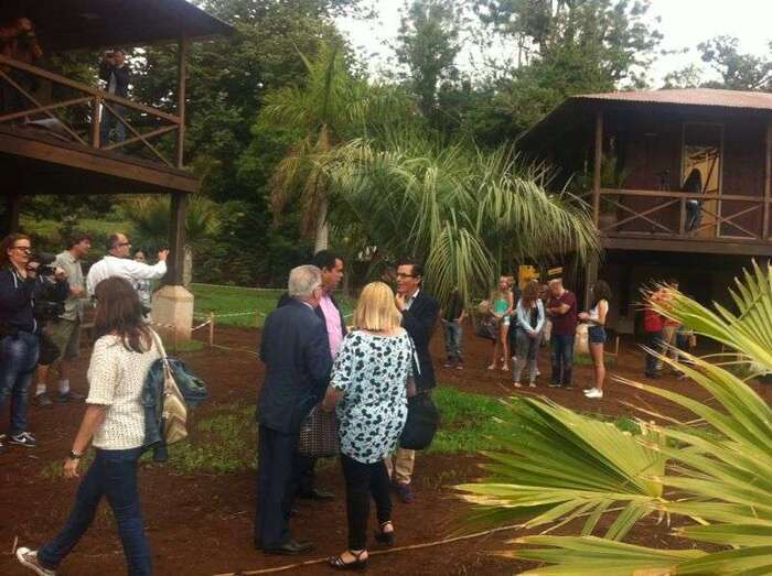 En la rueda de prensa que ha tenido lugar en Teror, Fernando González Molina ha declarado que “Palmeras en la nieve es la historia de dos grandes viajes. Uno en el presente, a la búsqueda de respuestas a los grandes interrogantes familiares, y otro en el pasado, que ocupará toda una vida y le dará sentido”. A lo que Adriana Ugarte ha añadido “Para mí es un placer formar parte del viaje iniciático y existencial de Clarence. Una aventura hacia el centro de su esencia que le revelará las claves para aprender a ser feliz”.