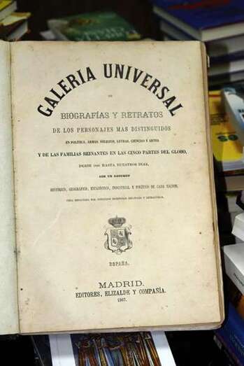 Ejemplares históricos que son auténticas joyas como la Ilustración del Derecho Real de España, de Don Juan Sala, editado en Madrid en 1839; o la Galería Universal de Biografías y retratos de los personajes más distinguidos en las cinco partes del globo, impreso en Madrid en 1867.