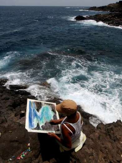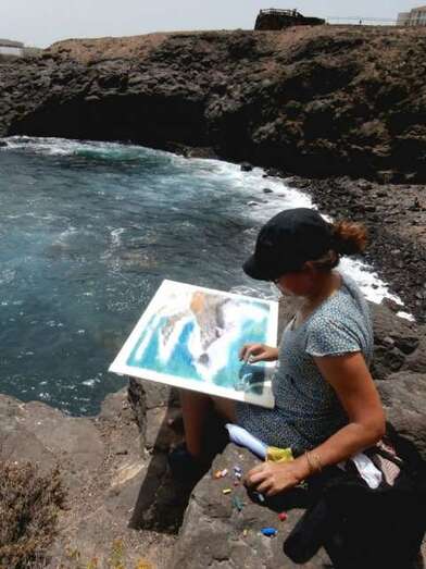 Una pintora recrea el mar en el litoral de Telde (Foto TA) Una pintora recrea el mar en el litoral de Telde (Foto TA)