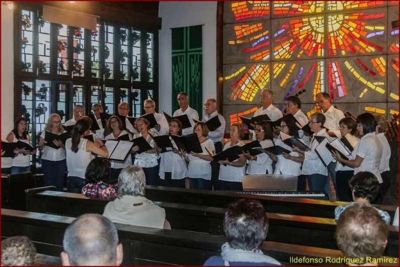 Telde.- Cumpliendo con el programa de actividades culturales programadas por la junta directiva del Círculo Cultural de Telde para el verano 2014, el Coro Amati presentó un selecto programa músico vocal en la actuación que tuvo lugar la tarde del viernes 25 de julio, celebración de Santiago el Mayor, en el Templo Ecuménico de Playa del Inglés del municipio sureño grancanario de San Bartolomé de Tirajana.