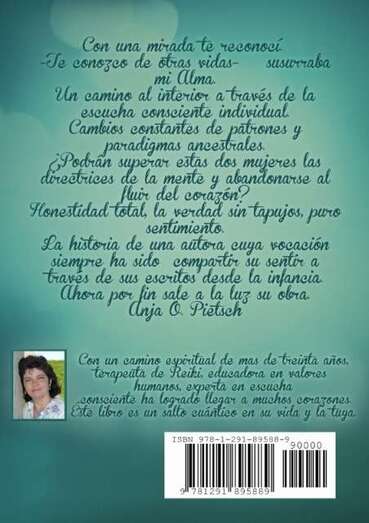 Se trata de un ejemplar que habla sobre el camino al amor a través de muchas vidas y de un sendero al interior a través de la escucha consciente individual. Narra también sobre los cambios constantes de patrones y paradigmas ancestrales. “¿Podrán superar estas dos mujeres las directrices de la mente y abandonarse al fluir del corazón? Honestidad total, la verdad sin tapujos, puro sentimiento”, explica la autora sobre este volumen.
