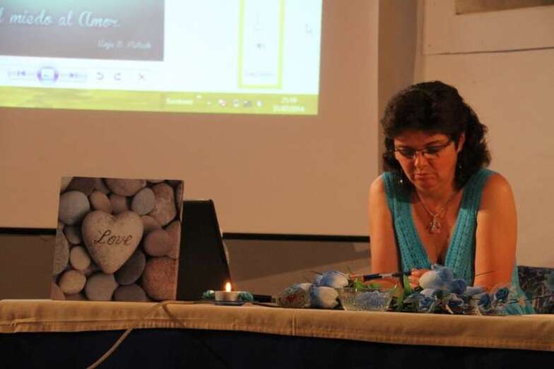Interviene la autora: “Muchas gracias mi amiga Elena Martín, amiga y compañera y mi maestra de Reiki de tercer nivel, que me ayuda muchísimo en ese camino, en momentos difíciles que de vez en cuando los hay todavía, indudablemente, porque somos humanos, y se lo agradezco mucho. Mi libro es la historia de un amor que me ha surgido casi sin buscarlo, yo diría, era algo nuevo para mí. Soy madre de dos hijos, he tenido dos parejas, hombres, y de repente me enamoré de una mirada y a través de esa mirada vi un alma. En un taller curso que hicimos juntas se empezó a hablar un poco de su infancia, de repente, yo sentí que había vivido esa infancia como si fuese un espectadora, como si hubiese estado ahí.