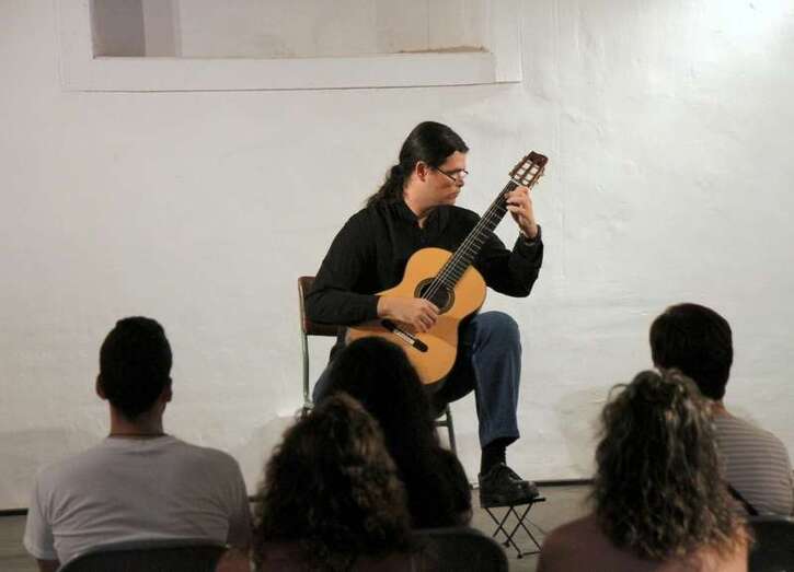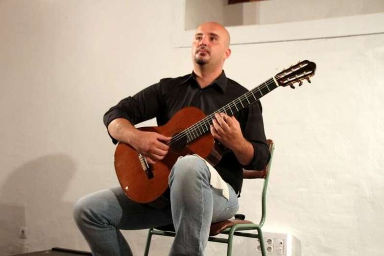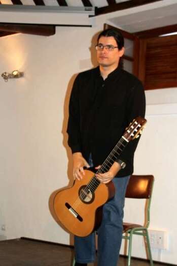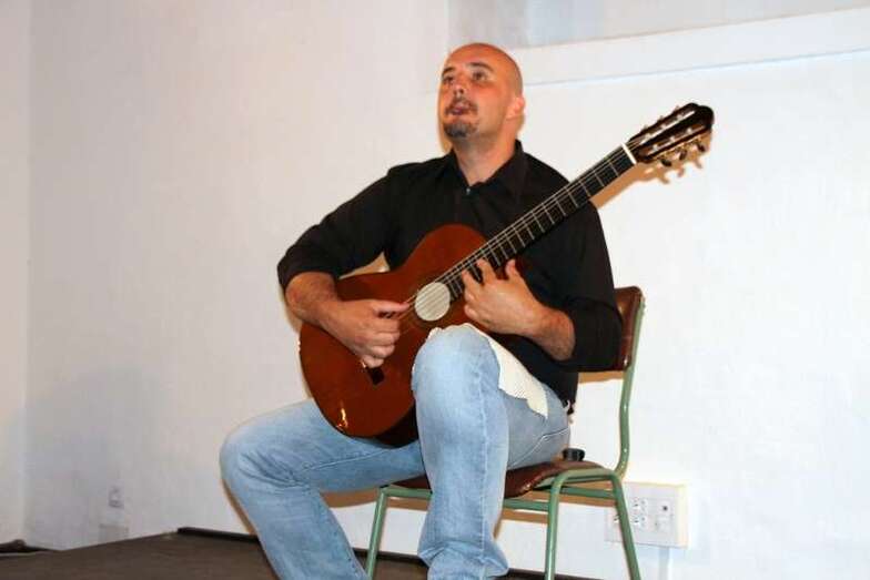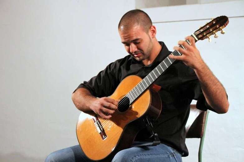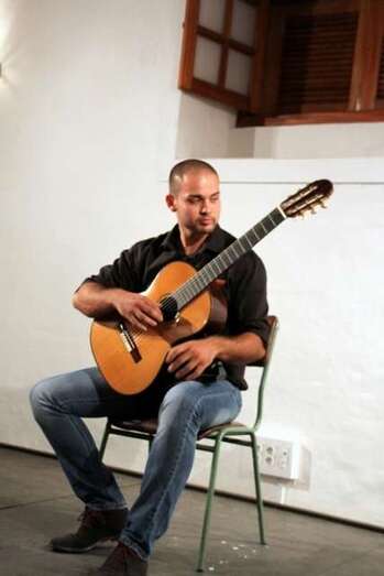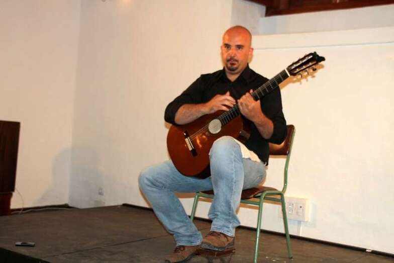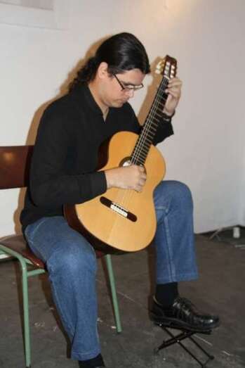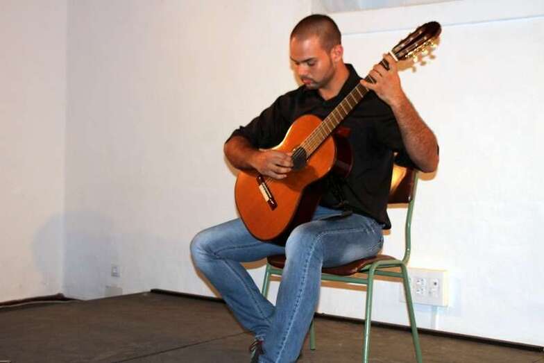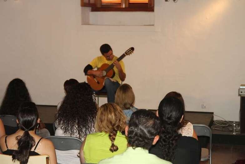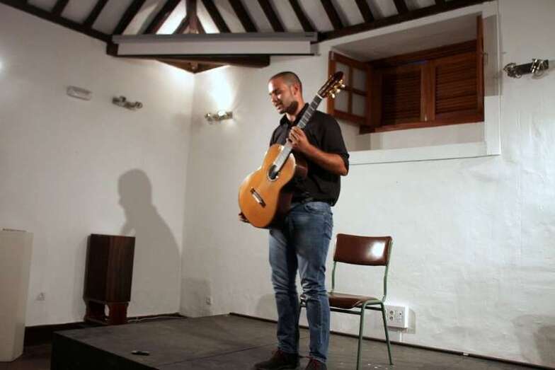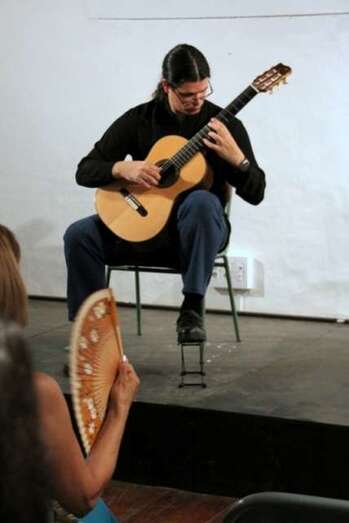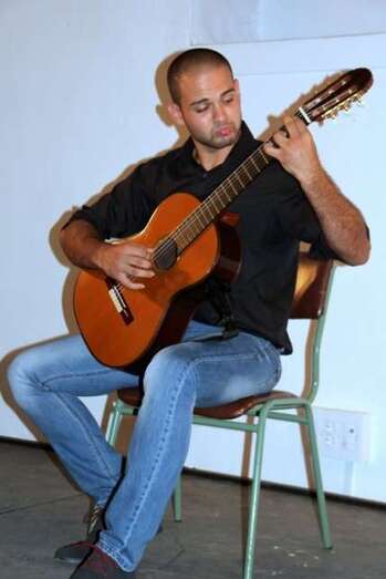 En segundo lugar la actuación del guitarrista Dámaso Ruiz, estudiante del Conservatorio, acaba de superar el tercero de profesional e inicia el cuarto curso de profesional en la especialidad de guitarra clásica, continuando sus colaboraciones musicales con Gonzalo Macías. Como examen de final de carrera para los que han elegido la guitarra consta de obras en las cuales están incluidos varios estilos musicales, desde el barroco obras clásicas, románticas, y contemporáneas. En guitarra se realizan conciertos igualmente con piano. El primer temas que interpreta Dámaso: Torija, de la Suite Castillos de España, del compositor español nacido en Madrid, (1891-1982), Federico Moreno Torroba, crítico musical y compositor de piezas para guitarra. Del concertista y compositor argentino Jorge Cardoso interpreta Milonga, y del concertista, compositor y profesor de guitarra, igualmente, argentino, José Luis Merlín, Joropo.