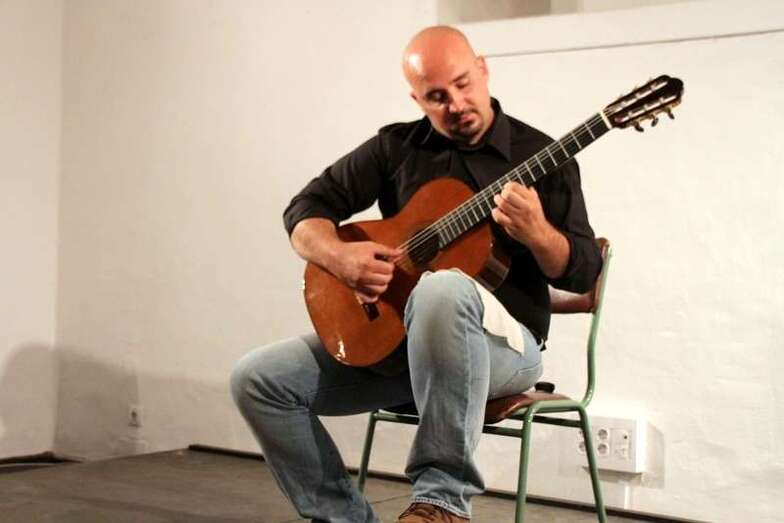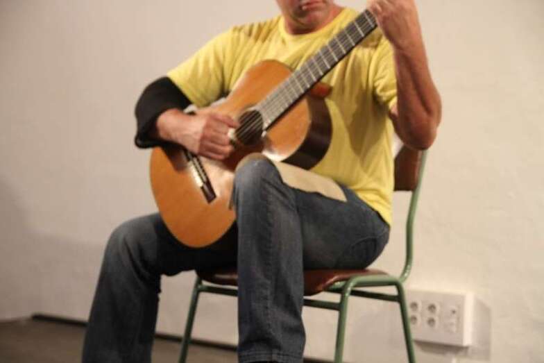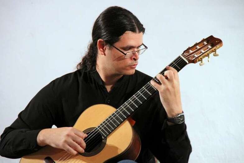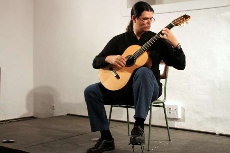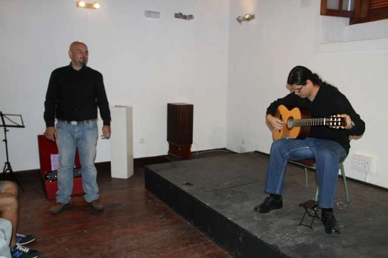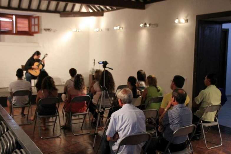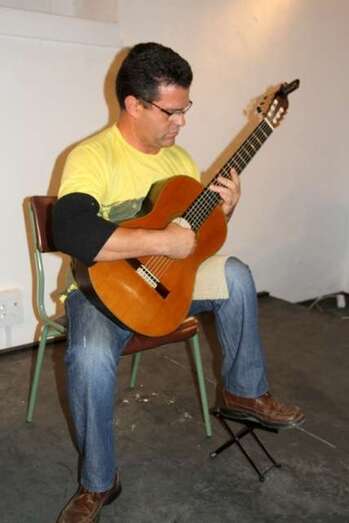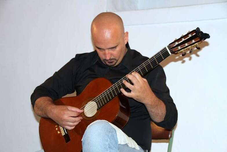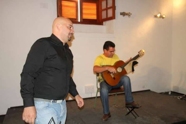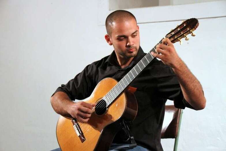 En segundo lugar la actuación del guitarrista Dámaso Ruiz, estudiante del Conservatorio, acaba de superar el tercero de profesional e inicia el cuarto curso de profesional en la especialidad de guitarra clásica, continuando sus colaboraciones musicales con Gonzalo Macías. Como examen de final de carrera para los que han elegido la guitarra consta de obras en las cuales están incluidos varios estilos musicales, desde el barroco obras clásicas, románticas, y contemporáneas. En guitarra se realizan conciertos igualmente con piano. El primer temas que interpreta Dámaso: Torija, de la Suite Castillos de España, del compositor español nacido en Madrid, (1891-1982), Federico Moreno Torroba, crítico musical y compositor de piezas para guitarra. Del concertista y compositor argentino Jorge Cardoso interpreta Milonga, y del concertista, compositor y profesor de guitarra, igualmente, argentino, José Luis Merlín, Joropo.