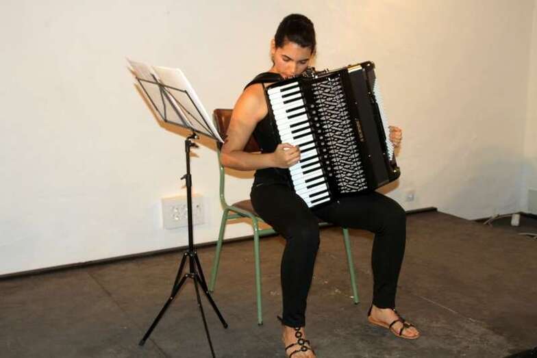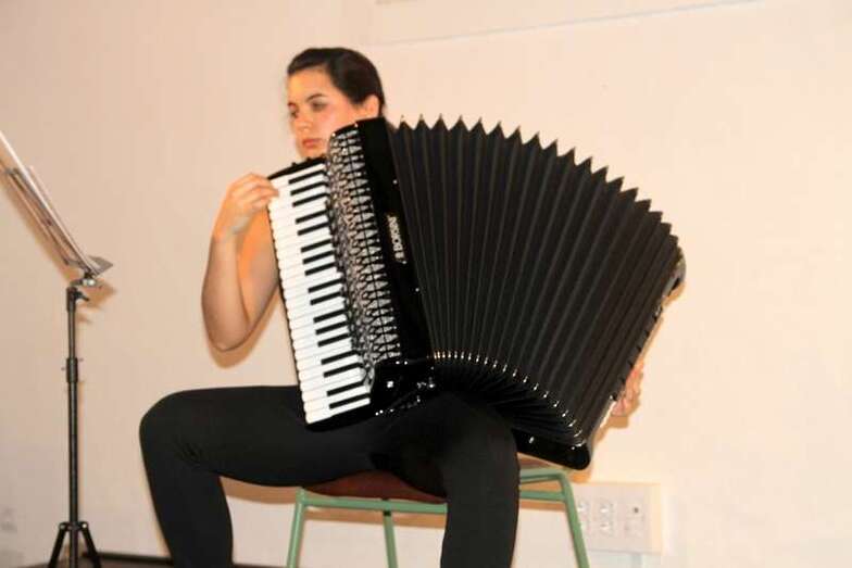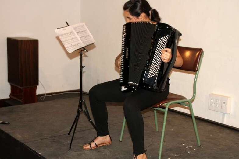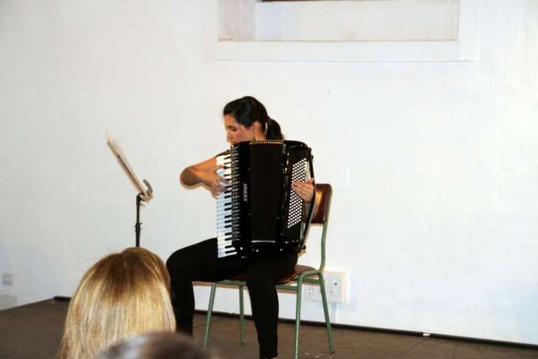 Presentado el concierto por Gonzalo Macías, se inicia con la intervención de una joven acordeonista, con un alto grado de perfeccionamiento en un instrumento difícil y muy versátil por la cantidad de formas y maneras de interpretación que puede desarrollar ante una partitura. Isabel Martel Medina, estudiante del último curso del Conservatorio Superior de Música de Canarias, en la especialidad de Pedagogía del Acordeón, actualmente ha realizado cursos sobre docencia de la música que acoge con mucho interés para dedicarse a impartir clases, en su especialidad, el acordeón.