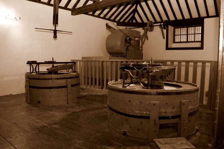 Fue construido por el Conde de la Vega Grande en 1829, época en la que era el dueño de casí el 60% de todas las tierras del sur de Gran Canaria. Lo construyó, precisamente, en este lugar, no por capricho, ni casualidad, sino porque existía entonces, y aún existe, enfrente, la cantonera de reparto de las aguas de la Heredad de Vega Mayor de Telde, que es la que al paso de sus aguas propulsaba la noria que accionaba el mecanismo molinero en sí. Era este molino de doble molienda, con doble piedra, lo que le hacía único en la isla, y además, de agua. Aunque, hay que decir que más tarde, como tantos otros, se convirtió en molino de fuego, utilizando motores modernos para mover la maquinaria que hiciera posible la molienda del millo, de donde se obtiene el rico gofio isleño que tú tanto conoces allá en tu tierra, y que tanto nos vincula a tu hermana isla de Cuba.