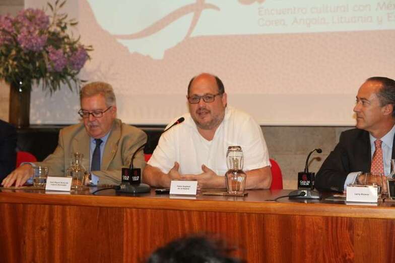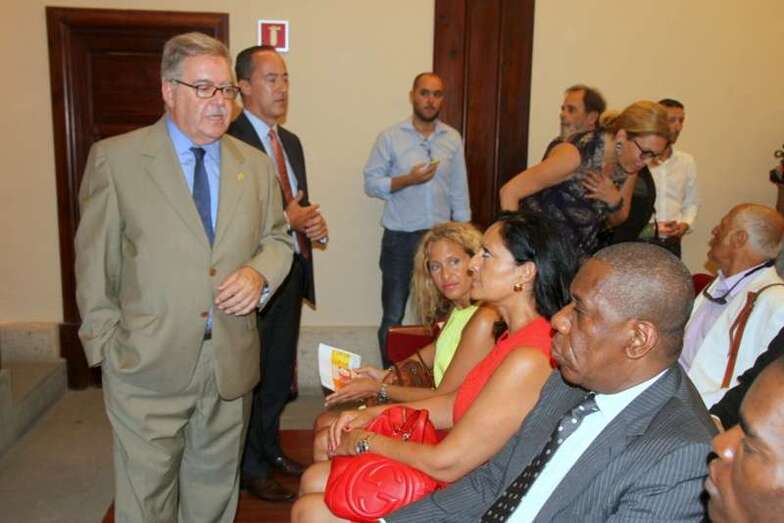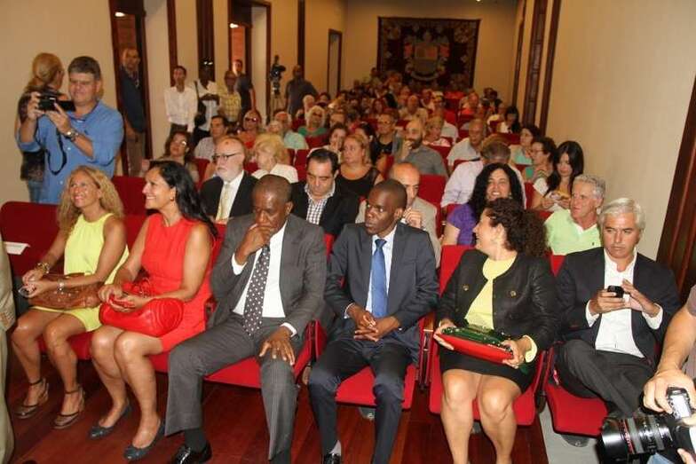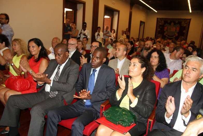 Abre el acto de presentación e inauguración presidido por el Presidente del Cabildo de Gran Canaria D. José Miguel Bravo de Laguna, que estuvo acompañado en la mesa por el Coordinador de Cultura y Patrimonio Histórico, Museos y Nuevas Tecnologías del Cabildo de Gran Canaria, D. Larry Álvarez. D. Lucas Bravo de Laguna Cabrera, Consejero de Deportes del Cabildo, y D. Pablo Raphael de la Madrid, agregado de Cultura de Méjico, director del Instituto de Méjico en España, y público asistente Consejeros de la Corporación, miembros de la Embajada de Angola.