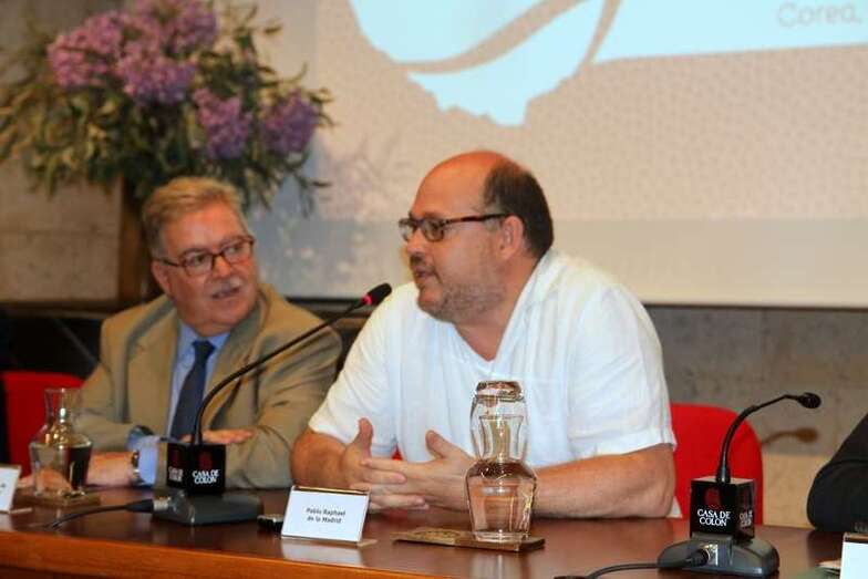 Interviene D. Pablo Raphael de la Madrid que expone: “Buenas tardes a todos y perdonen por el retraso, muchas gracias Sr. Presidente, para la Embajada de Méjico en España, para el Instituto de Méjico, siempre es un honor participar en estas actividades. Quiero saludar a los miembros del Gobierno de Gran Canaria y a su generosidad por recibirnos. A la Casa de Colón, por el montaje de esta preciosa Exposición, al Consulado de Méjico en las islas de Gran Canaria y Tenerife, por estar aquí, llevamos muchos meses programando la visita.