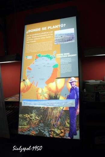 La visita fue muy amena explicándonos el origen mejicano del tomate, la fecha que vinieron las primeras plantas a Europa y luego a nuestras islas, datos botánicos de la tomatera, quienes fueron los primeros agricultores que plantaron el tomate en Gran Canaria a finales del siglo XIX, las zonas de la isla donde se plantó, los derivados actuales del tomate, el modo del cultivo (latadas), la confección de las rafias y todo el proceso del cultivo del tomate desde las mudas hasta la recolección.