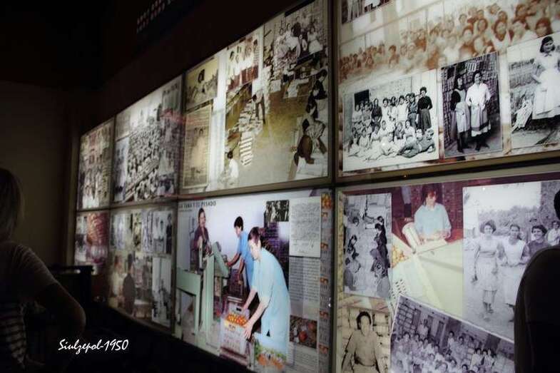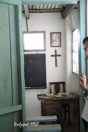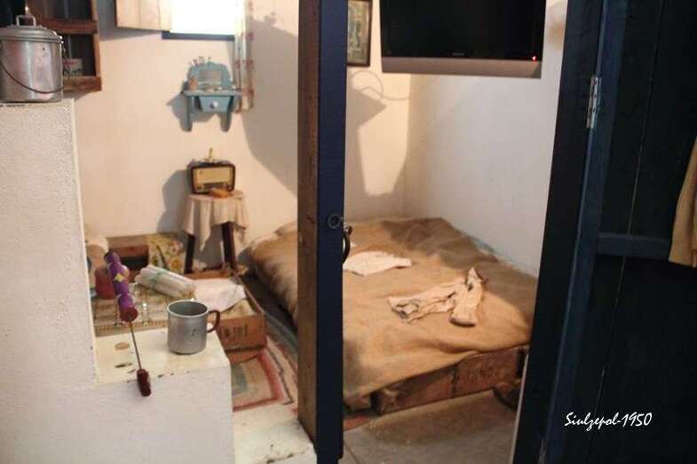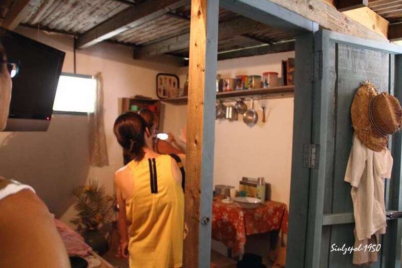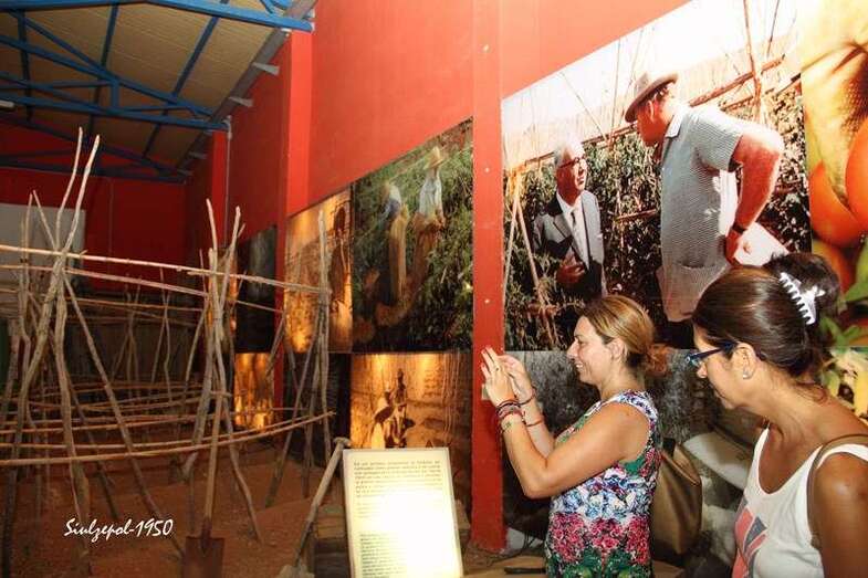 Casi en el final de la visita, pudimos contemplar cómo era una cuartería (vivienda temporal del aparcero), el mobiliario de fabricación propia y unos pocos utensilios, que nos hablaban claramente de las penurias que vivieron nuestros paisanos en los inicios de este cultivo y hasta bien entrada la década de 1960. Curiosa era la habitación donde existía algo parecido a una escuela, donde alguien habilitado al efecto hacía de maestro para una decena de chiquillos, en la pared el crucifijo y la foto del dictador Francisco Franco.