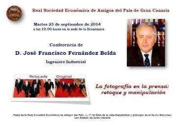 Telde.- El ingeniero industrial José Francisco Fernández Belda ofrecerá el próximo martes, 23 de septiembre, una conferencia en la Real Sociedad Económica de Amigos del País de Gran Canaria, en la capital grancanaria, a partir de las 19.00 horas. El articulista y colaborador de TELDEACTUALIDAD impartirá la charla La fotografía en la prensa: retoque y manipulación.