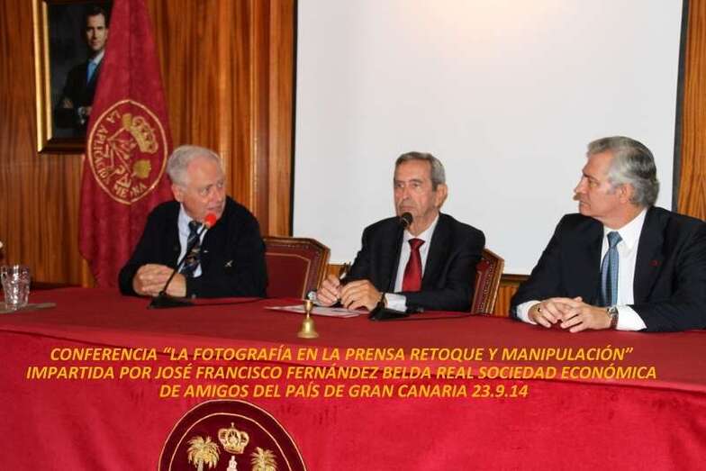 El martes 23 de septiembre el ingeniero industrial José Francisco Fernández Belda, colaborador y articulista de Teldeactualidad impartió en la sede de la Real Sociedad Económica de Amigos del País de Gran Canaria la conferencia: La fotografía en la prensa: retoque y manipulación, donde abordó una serie de contenidos respecto a las imágenes que, publicadas en diferentes medios de comunicación, información, diarios, revistas, publicidad, medios digitales, etc., han creado un estado de opinión en cuanto a la veracidad de las mismas dentro de las posibilidades que, con la importancia más o menos relevante del alcance de la noticia, han tenido que ser manipuladas, retocadas, algunas veces y en diferentes medios, en ocasiones con unos resultados de ínfima calidad, escandaloso, ridículo y falto de profesionalidad, teniendo en cuenta la cantidad de posibles observadores que a través de la red caen en la cuenta de esos retoques, desde la original hasta la que se publica, en la comunicación por la fotografía desde la imagen real a su manipulación.