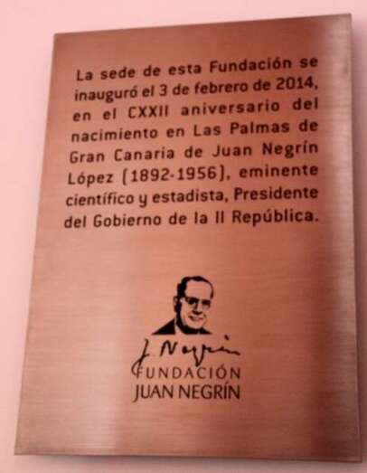 El pasado viernes 12 de septiembre se inauguró la exposición Archivo Fotográfico Juan Negrín, en la sala de exposiciones de la Fundación Juan Negrín en la calle Reyes Católicos 30 de Las Palmas de Gran Canaria. Según reza la placa descubierta el día de su inauguración: La sede de esta Fundación se inauguró el 3 de febrero de 2014, en el CXXII aniversario del nacimiento en Las Palmas de Gran Canaria de Juan Negrín López (1892- 1956), eminente científico y estadista, Presidente del Gobierno de la II República”.