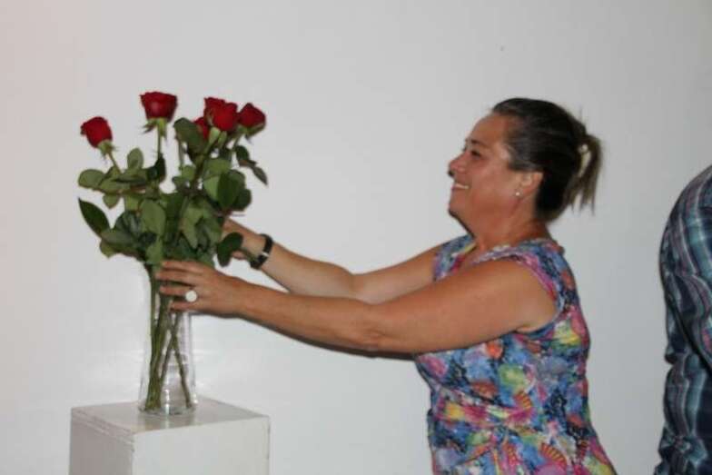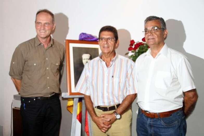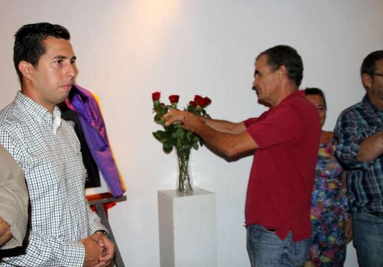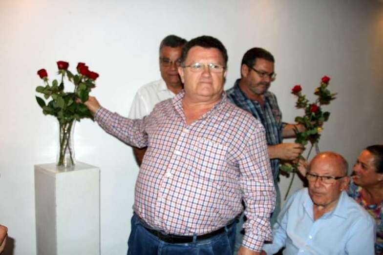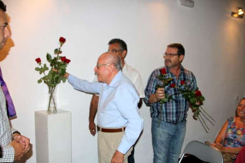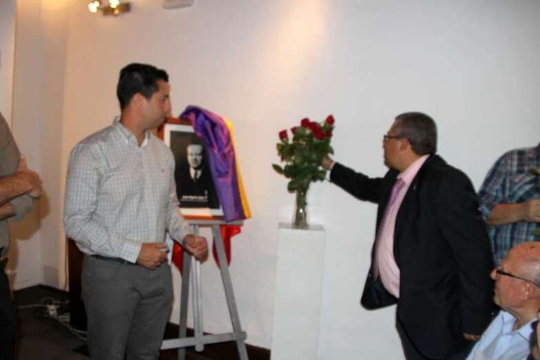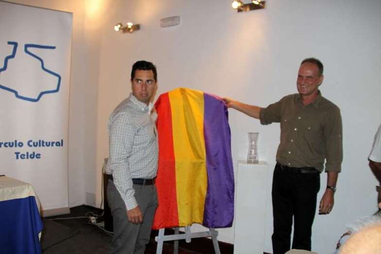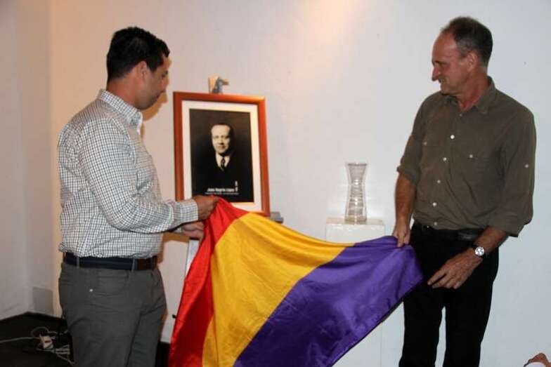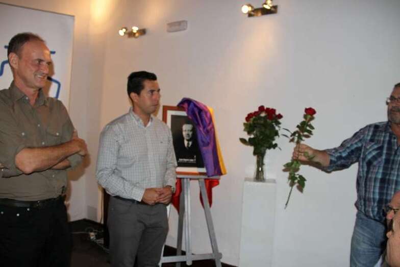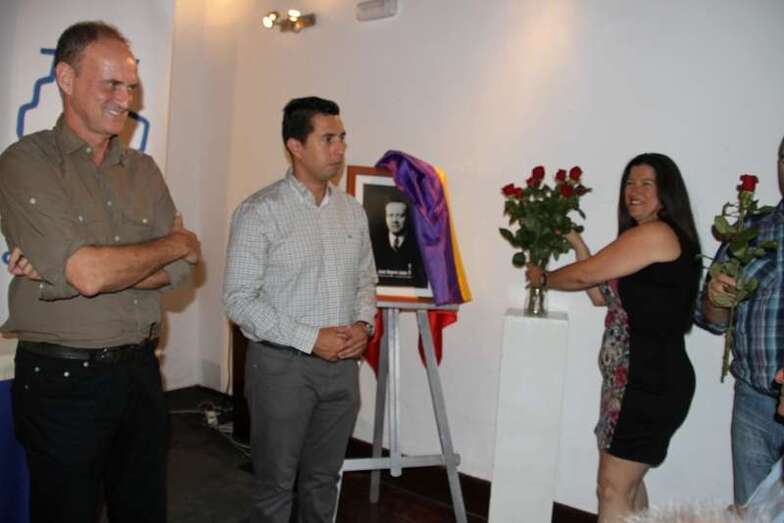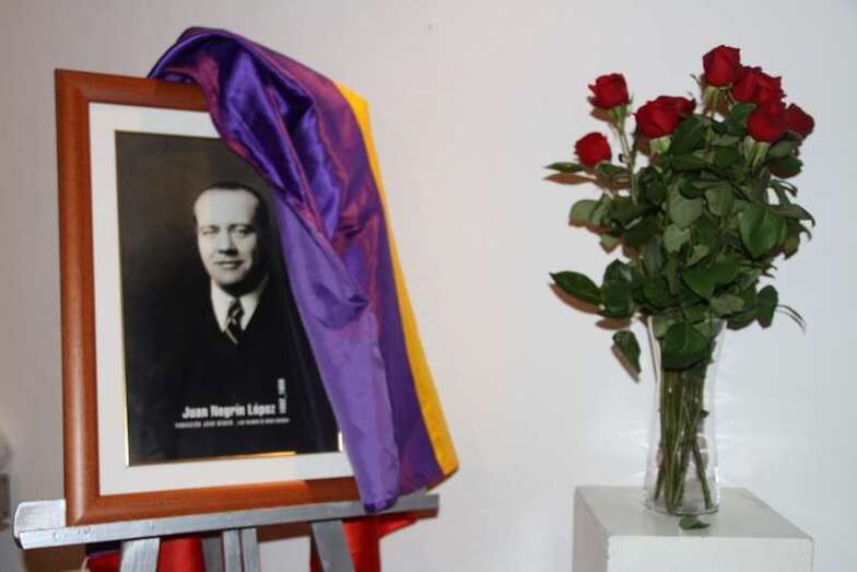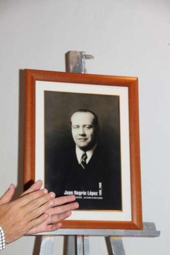 Ante un cuadro con la fotografía de Juan Negrín López, regalo de la Fundación en Las Palmas a la de Telde, cubierta por la bandera republicana, Alejandro Ramos y Sergio Millares descubren el marco y, en homenaje al político, se hace una ofrenda floral de doce rosas rojas a la memoria de Juan Negrín López, que depositan 12 destacados militantes, hombres y mujeres, presentes en el acto. El voluntario y colaborador de la Fundación Juan Negrín, Antonio Martín Pérez, de la Agrupación Socialista de Las Palmas de Gran Canaria Juan Rodríguez Doreste, encargado de la relación de los partidos con la Fundación, excusa la ausencia de José Medina y Eligio Hernández, por causas de representación ineludible fuera de la isla, y se nombró a Sergio Millares para la conferencia, presenta la personalidad del conferenciante: