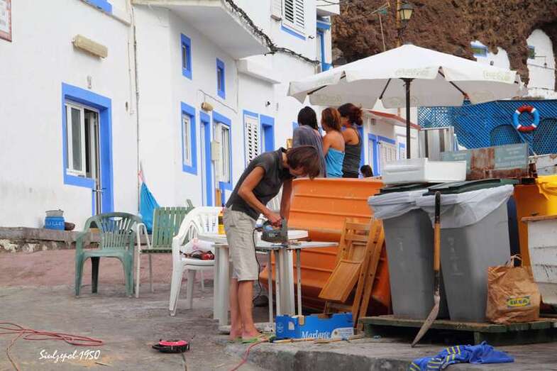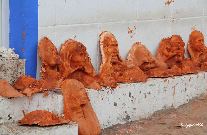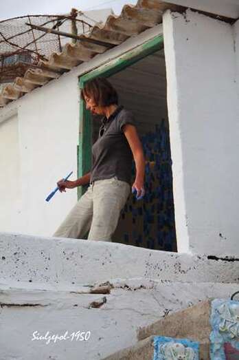 Luego visitamos en la misma playa la obra que realizaba el holandés Arno Arts y desde allí contemplamos la ejecución de la obra del polaco Jarek Lustych, quien además a realizado un taller de grabación en vacío con arcilla y otros productos, de unas caretas cuyos modelos son los propios vecinos del barrio. A continuación, visitamos la obra de la alemana Susanne Ruoff.