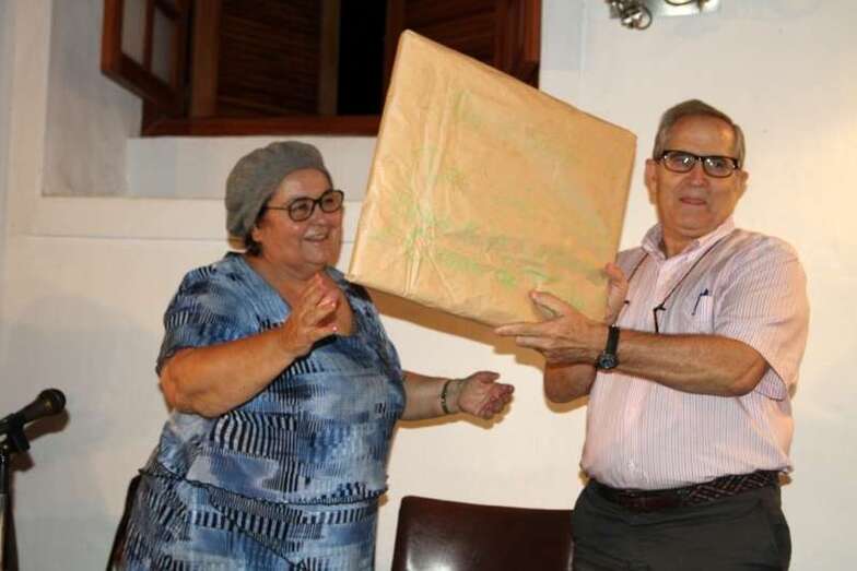 El acto finaliza con el agradecimiento y reconocimiento dedicado a mi labor que Pepa Aurora hace público por mis colaboraciones con la difusión de los actos del acontecer cultural de nuestro entorno, desde esta atalaya del Círculo Cultural de Telde y el digital Teldeactualidad. Un regalo en forma de trabajo artístico, que recibo con el agradecimiento y orgullo de manos de Pepa Aurora, con mucho gusto y por la admiración que siento por esta escritora desde que la conocí y me llegaron sus fantásticas obras literarias, relatos, narraciones, poemas y cuentos infantiles, me propuse leer, aprender de su literatura y difundir su obra.