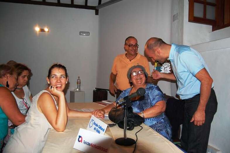 Extraordinaria velada literaria en la tarde del viernes 24 de octubre, presentada en el Círculo Cultural de Telde, que convocó a numeroso público de la docencia, del mundo de las letras, de la palabra, del verso, de los cuentos, de la novela, del teatro, un mundo que se hizo realidad en forma de cuento en los labios, en la dulzura y en la declamación de la escritora Pepa Aurora de los poemas del libro que presentó, Olas y más Olas, conducido por los escritores, Ernesto Rodríguez Abad y Juan Ferrera Gil, que igualmente presentaron sus obras, cuentos infantiles, que nos llevó por los mundos de la ilusión para soñar como niños mayores o mayores en busca de la niñez.