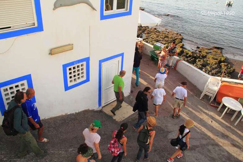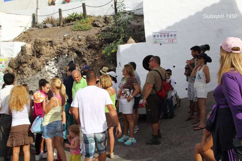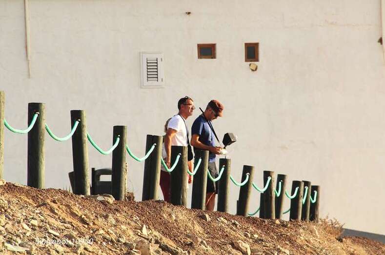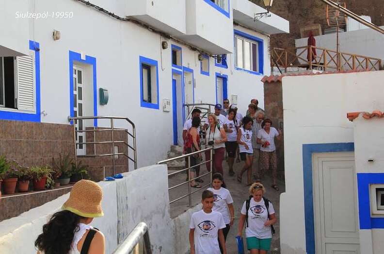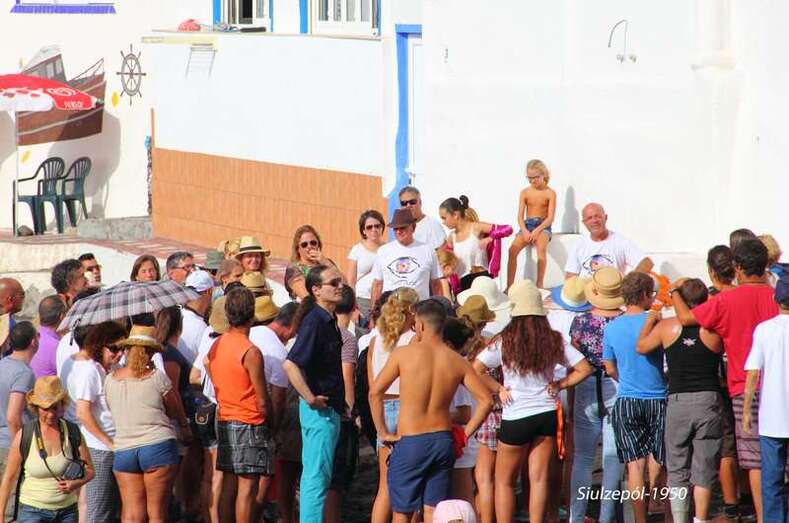 Nos tropezamos de frente con una novedad más del equipo, un miembro de la Asociación Ignacio Suárez, hijo de nuestro amigo Pepe Suárez Talavera, trabaja en una empresa de información y reportajes de fotos y videos y, ni corto ni perezoso apareció allí con un “done”, que sobrevolaba toda la playa y las diferentes obras tomando fotos y grabando un video de algo que se realiza por primera vez en España y que se ha venido en denominar “Tufi´Arete-2014”, evento al que auguramos una larga vida. El mosquito, “el done”, nos acompañaría en todo el recorrido de la inauguración, en la cual presenciamos la sorpresa de que en cada obra el artista se expresaba en su idioma y un joven o vecinos del barrio, realizaba posteriormente la traducción al castellano.