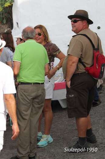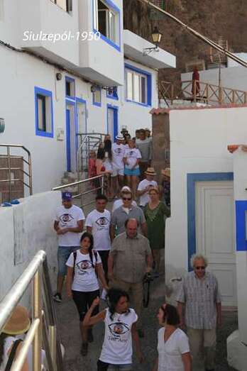 Se continuó el recorrido hacia la obra del canadiense Roger Gaudreau, en plena Punta de Silva y se retornó a la Avenida de la Marina, donde vimos un stand vendiéndose camisetas alusivas al evento como medio de recaudación para sufragar gastos, se vendieron muchas camisetas a propios y extraños, aunque aquí con la cordialidad reinante no habían extraños. Se contó con la presencia de la Sra. Alcaldesa Doña María del Carmen Castellano que se integró al recorrido como una visitante más, ataviada veraniegamente.