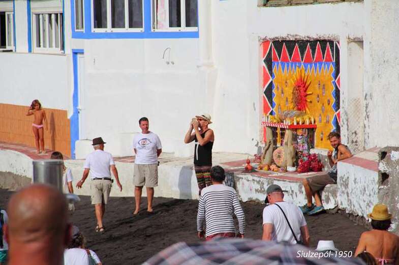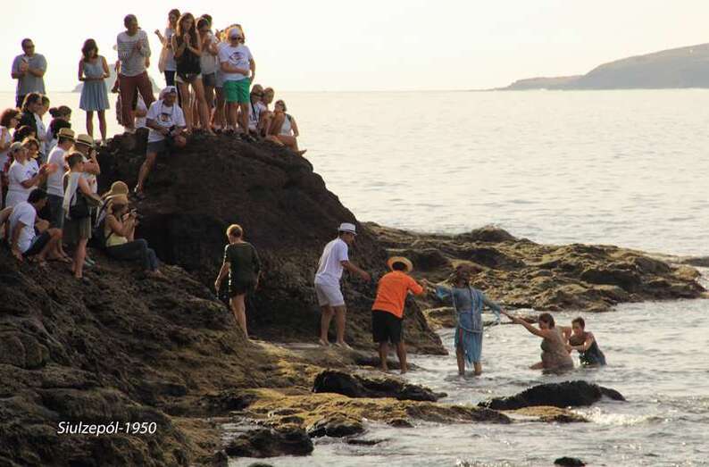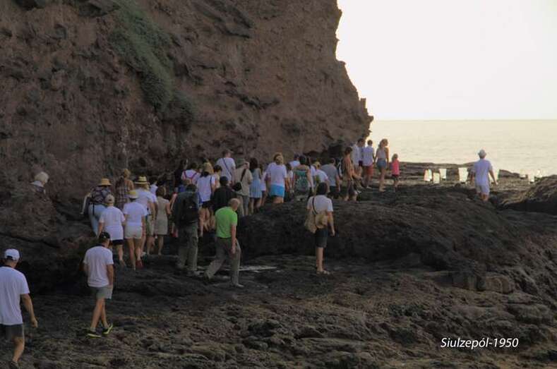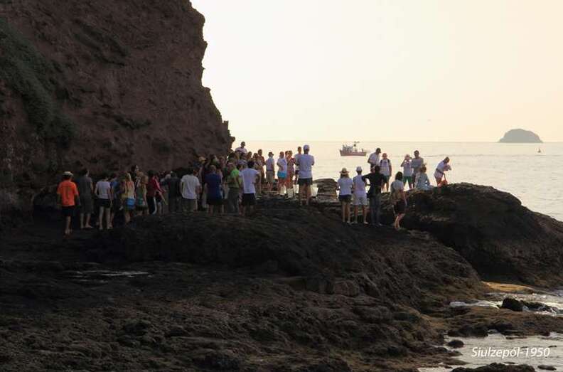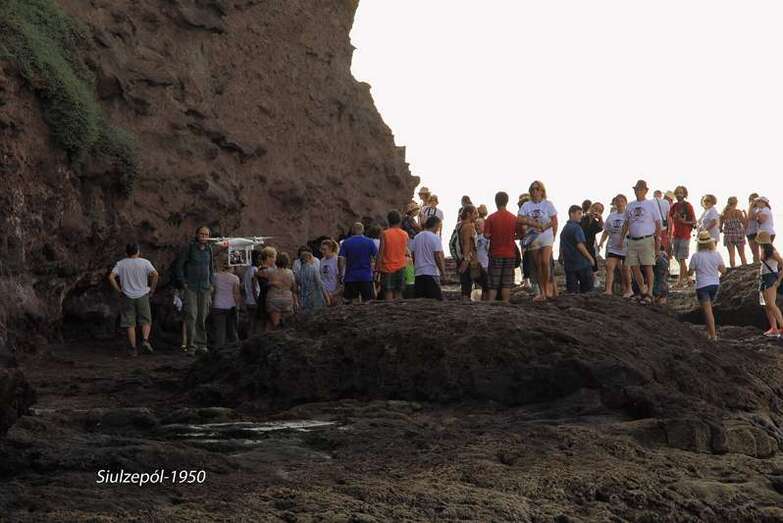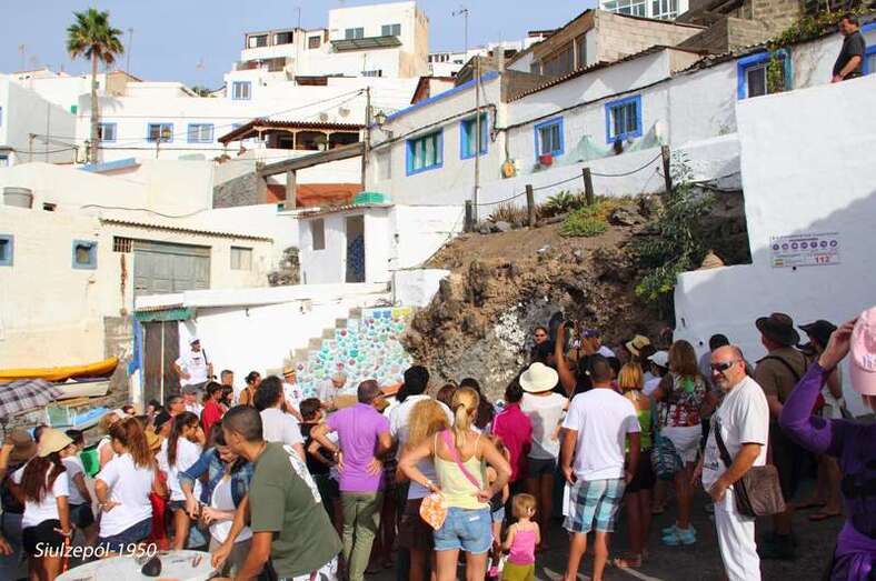 Después de inaugurarse la obra del francés Olivier Huet y Margrit Neundorff, en la cueva que está sobre la Punta de Silva, la comitiva bajo a la Avenida de la Marina para dirigirse a la mencionada punta, donde la artista norteamericana Cherie Sampson y varias vecinas del barrio, realizaron una representación de danza y mímica que titularon “el baño de las Harimaguadas”, siendo al final ovacionadas por el numeroso grupo de acompañantes, vecinos y foráneos (el aparcamiento se llenó totalmente de vehículos que hubieron de ser aparcado en el vial de acceso al barrio).