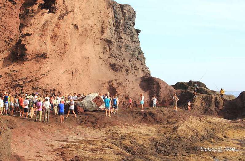 El día se prometía interesante, aunque nunca nos llegamos a imaginar el cúmulo de novedades que encontramos a nuestro paso. De entrada antes de iniciar la bajada a la playa había un cartel sinóptico que informaba de la ubicación de cada obra, el nombre de la misma (que no se había decidido por los artistas hasta ayer) y el nombre del artista, el que se perdía era porque quería hacerlo en aquel idílico lugar.
