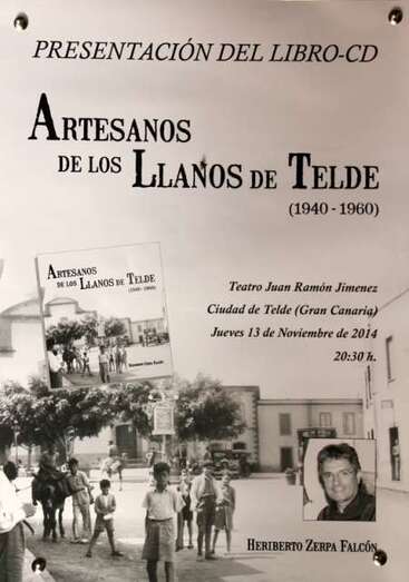 A don Heriberto Zerpa Falcón autor del libro Cd, Artesanos de Los Llanos de Telde, que con su interpretación del Himno de Telde por parte del Coro Amati y la Banda Municipal de Telde será presentado el jueves 13 de noviembre en el Teatro Juan Ramón Jiménez, presentación que en parte se adelanta hoy con la muestra de dibujos de Máximo Riol, que forman parte de la obra de Heriberto Zerpa. A todo el público asistente en esta sala del Molino del Conde y a las empresas colaboradoras, a Teldeactualidad, Romelpe, Centro Óptico de Telde, Buona Pizza, Tegrarte. He querido manifestar nuestra consideración y agradecimiento a todos los compañeros que realizan, trabajan y mantienen una actividad cultural constante. Aprovecho para invitarles a la IV Jornadas de Cultura del Agua, que se celebrará en esta sala. A todos bienvenidos y muchas gracias”.