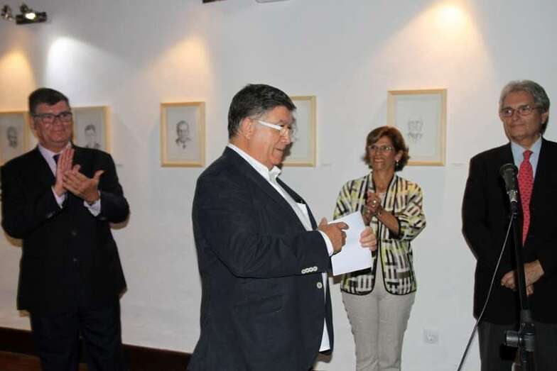 Siguiendo esa tradición de gente que ama y trabaja por su ciudad que se siente importante porque pertenece a la sociedad teldense tenemos a Heriberto Zerpa Falcón. Máximo Riol como un hombre del Renacimiento ha tenido la buena mano de expresar en sus dibujos con la idea de Heriberto Zerpa, que es honrar a las personas que fueron unos referentes sociales y económicos en la ciudad, concretamente en el barrio de arriba, de Los Llanos, donde cada puerta era un oficio, cada puerta era un punto para ver a alguien trabajando. Primero elegir a un grupo de personas que con su buen oficio se necesitaron algunos ya perdidos con el tiempo y después inspirar al artista Máximo Riol a hacer estos retratos que los representan muy bien en sus dibujos. Felicitar al artista por tan excelente trabajo”.