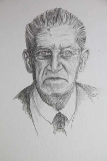 Me lo planteé como un reto y creo que algunos se parecen, los que tengan canas son los que mejor pueden opinar. He tratado de ser fiel con unos rasgos y sus miradas para poder transmitir su interior, sobre todo, la honradez de su oficio. Esta gente trabajaba y trabaja como mejor sabían y saben, lo digo en pretérito y en presente porque algunos todavía nos acompañan en esta sala, y espero que por mucho tiempo, ninguno se hizo rico y hoy les recordamos por su buen hacer. La técnica utilizada son unos simples lápices del 2, del 6 y del 9, valiéndome de fotografías que me facilitó Heriberto y que le costó tiempo recopilar.