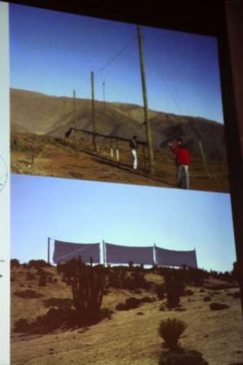 En una interesante conferencia ofrecida anoche en la sede del Círculo Cultural de Telde, en el marco de las jornadas organizadas por la Casa-Museo León y Castillo en colaboración con el colectivo El Bloque, Ricardo Gil expuso con todo lujo de detalles las ventajas de este novedoso sistema que cuenta en su haber con un asombroso récord, el de obtener en un solo día y con un único artefacto 1.300 litros de agua utilizando como materia prima la precipitación horizontal.