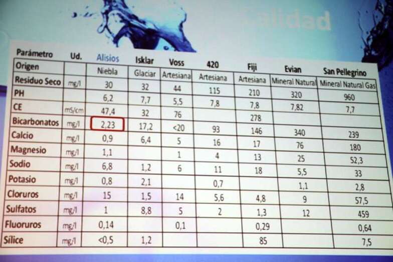 Agua ecológica de calidad, captada sin necesidades energéticas, sin residuos y sin que ello afecte a otros recursos hídricos de la zona y que presenta unas propiedades que la hacen única: Una mineralización muy débil y sin apenas bicarbonatos, lo que le otorga un importante equilibro en los niveles de sales minerales.