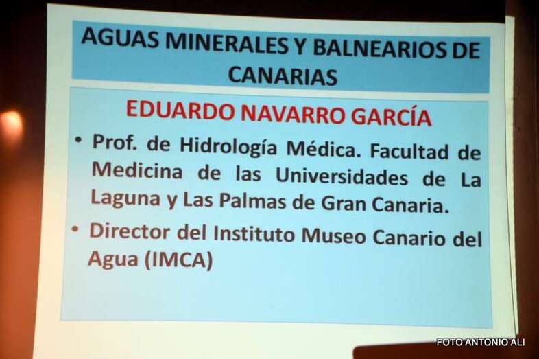 Una buena y sana solución que en muchas ocasiones el corazón y las arterias interiores, profundas de nuestra isla y el agua que discurría por los manantiales hizo todo lo bueno que se podía desear para bien de la sociedad y que el profesor, doctor en hidrología médica don Eduardo Navarro García nos ha acercado a la historia y mundo de la salud por el agua. Muchas gracias.