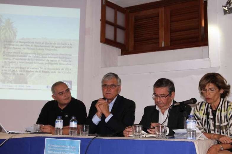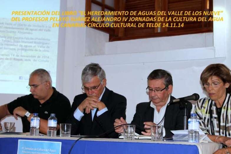 Con la presentación de la obra El Heredamiento de Aguas del Valle de Los Nueve, del ingeniero, profesor, investigador, historiador y conocedor de la zona de medianías teldense del Valle de Los Nueve, Pelayo Suárez Alejandro, que escribe, testimonia y nos acerca a la interesante y secular historia de esta Heredad, así como muchos de los temas referentes al agua que se han abordado en estas IV Jornadas de la Cultura del Agua en Canarias 2014, durante la semana en el Molino del Conde, sede del Círculo Cultural de Telde, con magníficas, extensas y bien documentadas ponencias impartidas por especialistas, profesores, y estudiosos de un tema tan transcendental y de suma importancia como es el agua que discurre por las entrañas de nuestra isla, de nuestro archipiélago.