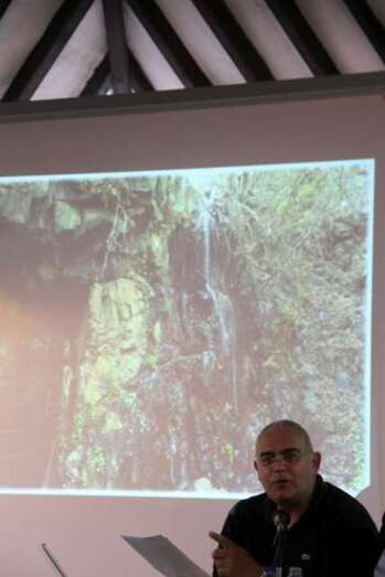 Básicamente quiero decirles lo que es la Heredad del Valle de los Nueve. Heredad que obtiene sus aguas desde dos galerías que salen del Cazadores y Las Breñas, Blanquizal y los Guinderos, esto viene regando todo lo que es el Paraje Natural del Barranco de los Cernícalos. Desde 1501 el agua transcurre, paraje que está un poco abandonado y me gustaría que el Cabildo tomara nota y pudiéramos hacer un jardín con el agua de esas galerías propiedad de la Heredad de Aguas del Valle de los Nueve. ¿Qué es lo que riega la Heredad? La Heredad viene regando desde ese barranco, desde Arenales hasta una finca de una familia teldense frente al Hornillo, hasta aquí llega el agua, diez kilómetros de recorrido y riegos. La Heredad se compone actualmente de 575 partícipes o propietarios. Tiene 840 horas divididas en 35 días de dulas y me cabe el orgullo que en los último años hay un montón de personas jóvenes que, con el tema del paro, están volviendo a recobrar y retomar los terrenos de las familias, y nos están pidiendo cada día riego.