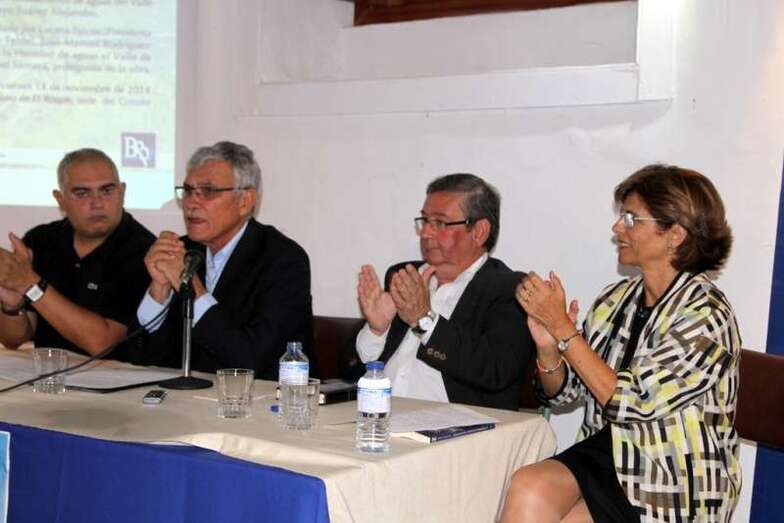 Se presenta el libro como bien ha dicho Juan Ismael y ya me queda poco que decir, él sabe tanto o más que yo del libro. Han transcurrido más de 500 años desde la creación del Heredamiento de aguas del Valle de Los Nueve. Esta noche hace exactamente 513 años y dos meses menos dos días que se creó este Heredamiento, porque fue el día 16 de septiembre de 1501. Antes hubo dos actas de firma, el 12 y el 14 por eso es el día 16 en que se creó realmente este Heredamiento. Ello ha dado lugar en este tiempo de cinco siglos a la creación de una historia que va unida a toda el área de influencia de esta Heredad y que ha contribuido de una manera determinante al modo de desarrollo y supervivencia de éstas áreas agrícolas.