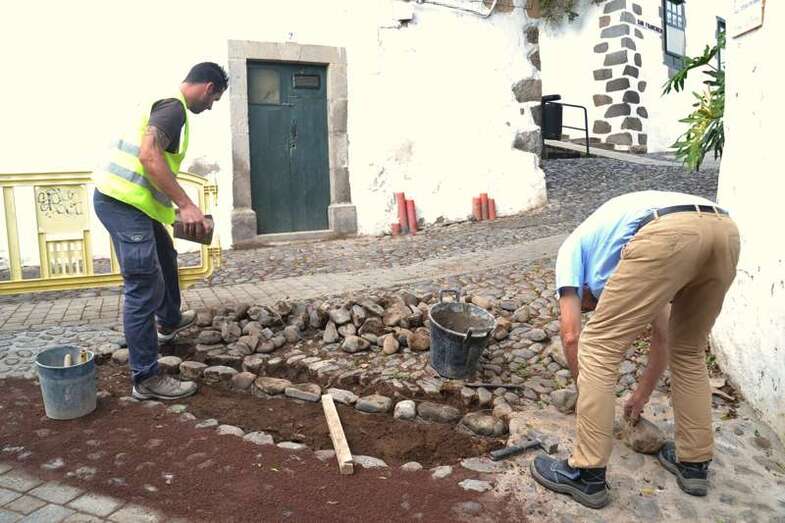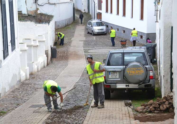 Principalmente esta plantilla se encarga de reponer el pavimento, un empedrado de callao que requiere un cuidado especial. También se ha procedido a desbrozar de malas hierbas los espacios públicos, incrementadas con las últimas lluvias, además de intensificar la limpieza de las vías y de reparar y pintar muros.