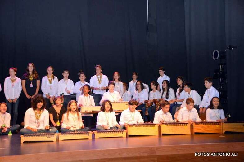 Para finalizar con el Aula de Música los alumnos ejecutaron una polka piqué, el tradicional Jingle Bells. En el escenario exhibieron una danza circular, que desde una visión de técnicas corporales, se busca el equilibrio entre dar y recibir, centrándose en el amor incondicional que se estimula en estas épocas navideñas.