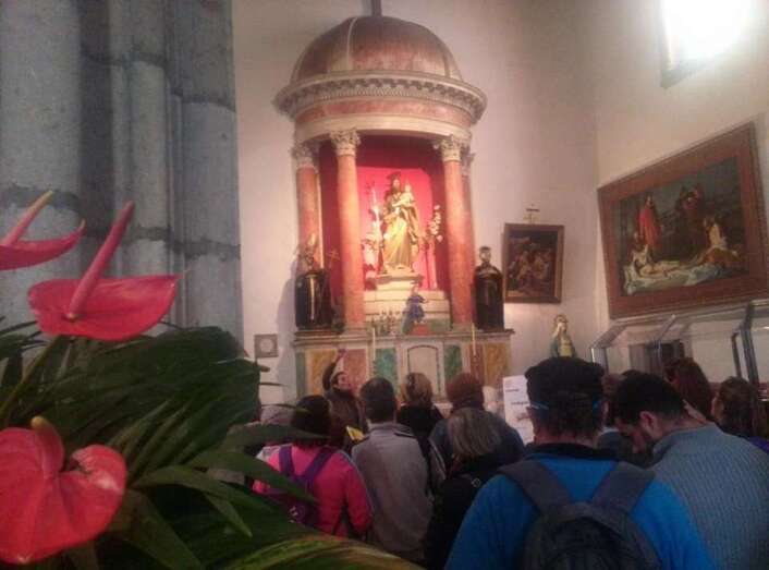 La Basílica Menor de San Juan y Santuario del Santísimo Cristo de Telde dio cobijo a los visitantes en el inicio de una ruta guiada por la licenciada en Geografía e Historia Leticia Jiménez Ortega que continuó por la plaza pública, la calle Duende, el Rincón Plácido Fleitas, la Casa Condal y las Casas Consistoriales.