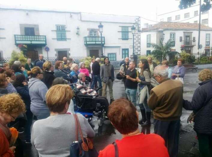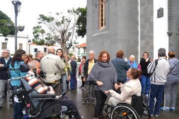 Ni la lluvia ni las barreras arquitectónicas fueron esta vez impedimento para que miembros de colectivos como Aspaym Canarias, la Confederación de Personas con Discapacidad Física y Orgánica o la Asociación de Sordos de Gran Canaria, además de usuarios del Centro de Mayores, asociaciones vecinales y ciudadanos a título individual, se acercaran a conocer la historia y la cultura que se esconde tras los muros de los edificios más emblemáticos y representativos del núcleo fundacional de la ciudad.