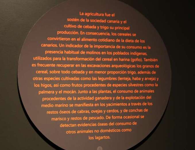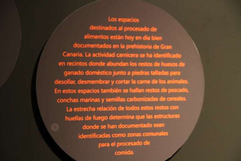 Interesante y didáctica exposición temporal que complementa a las demás permanentes que se exhiben en el Museo Canario, de gran importancia por los muchos descubrimientos y estudios sobre la vida en los poblados de los antiguos canarios, donde podemos observar las clasificaciones de cereales tratados por sus semillas descubiertas en el suelo o espacios dedicados a graneros, trigo, cebada, la agricultura fue el sostén de aquella sociedad, o los procedentes de muestras de árboles, higuera, palmeral, mocán, argamasas, etc. Rostros de ídolos, ídolos, pintaderas, restos conchas marinas, burgaos, consumo de pescados conocidos, abade, bocinegro, palometa, galana, longorón, mero, morena, sardinas, pescado que para su pesca y preparación utilizaban anzuelos y escamadores hechos con cuerno de cabra o hueso que adaptaban y fabricaban para su uso.