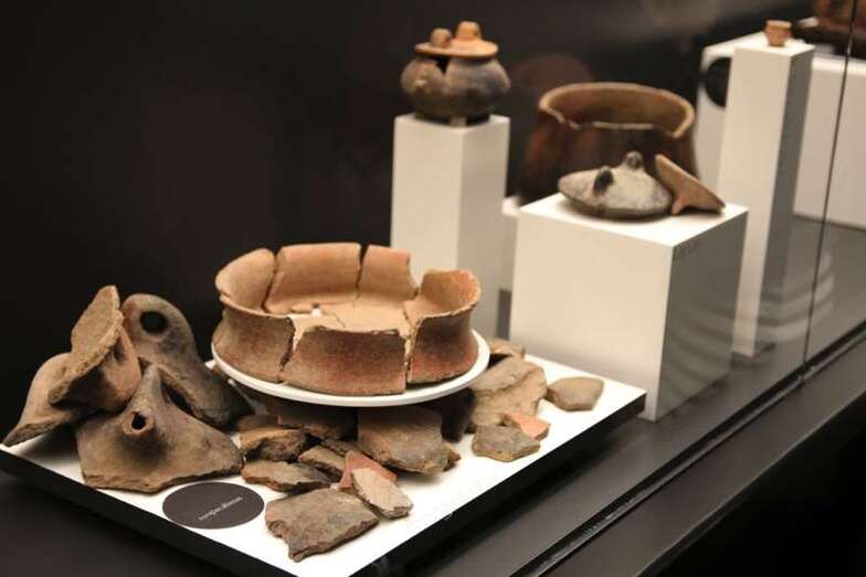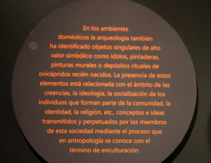 Tras los expositores se exhiben numerosas piezas que formaron parte de la actividad económica, social, ritual, religiosa y como se expone en el díptico de información sobre la exposición: En la propuesta museográfica se insiste en la necesidad de explicar, incluso de manera reiterativa, que los poblados no son exclusivamente lugares donde se descansa, se come o se trabaja sino que por encima de todo es el espacio donde se define y se refuerza la identidad y el sentido de colectivo de la comunidad; donde se fijan las reglas de convivencia y se asimilan las normas. En definitiva, el lugar donde se define y perpetúa la cultura.