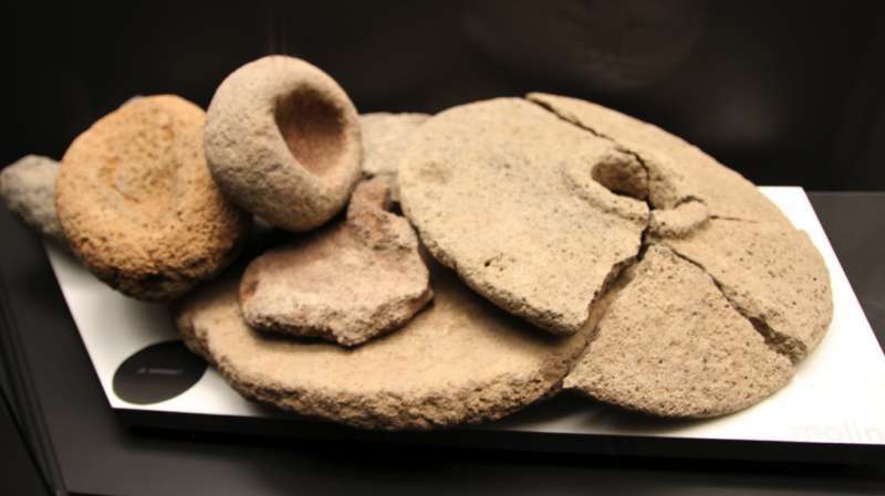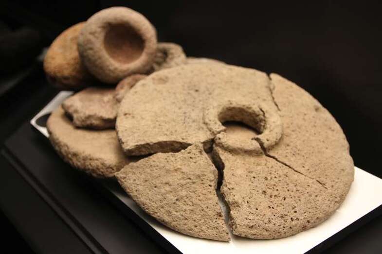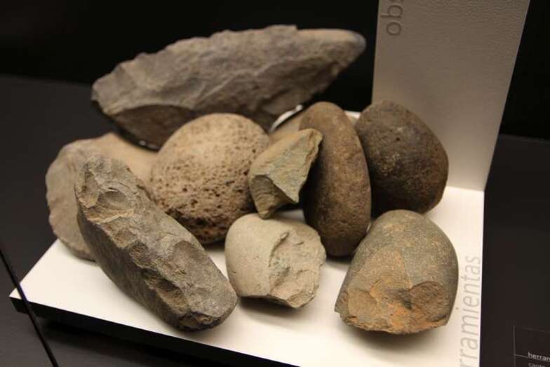 Herramientas que elaboraban a partir de piedras, cantos, lajas, lascas y núcleos a partir de obsidianas, percutores, picos, callaos, como las que se exponen para el uso de molinos de mano rotatorios, molinos morteros de cavidad oval y de cavidad circular.