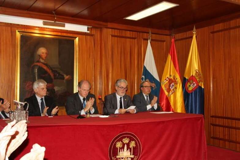 Descubierta la placa conmemorativa ante la presencia de familiares, amigos, autoridades y personalidades del ámbito cultural, empresarial y de la sociedad canaria por la que tanto luchó el homenajeado, fallecido hace unos meses, tiene lugar en el salón de actos de la Real Sociedad Económica una serie de intervenciones de personalidades, amigos, y colaboradores que recuerdan su paso por las diferentes instituciones, entidades culturales, políticas, sociales, glosando la figura de un hombre que desde su profesión de abogado supo dedicar a Gran Canaria y a su sociedad toda su vida por el engrandecimiento social, histórico y de una relevancia tan importante, entre otros, como es el logro de la Universidad de Las Palmas de Gran Canaria.